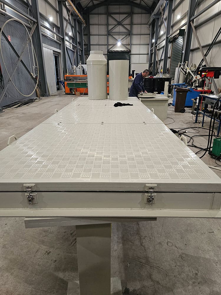 - Στεγανά Καλύμματα Φρεατίων: Η απόλυτη λύση για πλήρη στεγανοποίηση. Εξασφαλίζουν τη σωστή λειτουργία των συστημάτων απόσμησης στα αντλιοστάσια λυμάτων, βελτιστοποιώντας ταυτόχρονα την ενεργειακή τους κατανάλωση. Χάρη στο εξαιρετικά ελαφρύ υλικό τους και την αντιολισθητική επιφάνεια (R10), προσφέρουν απόλυτη ασφάλεια και ευκολία χειρισμού (άνοιγμα/κλείσιμο) για το προσωπικό σε ΔΕΥΑ, Δήμους, ξενοδοχειακές και βιομηχανικές εγκαταστάσεις.